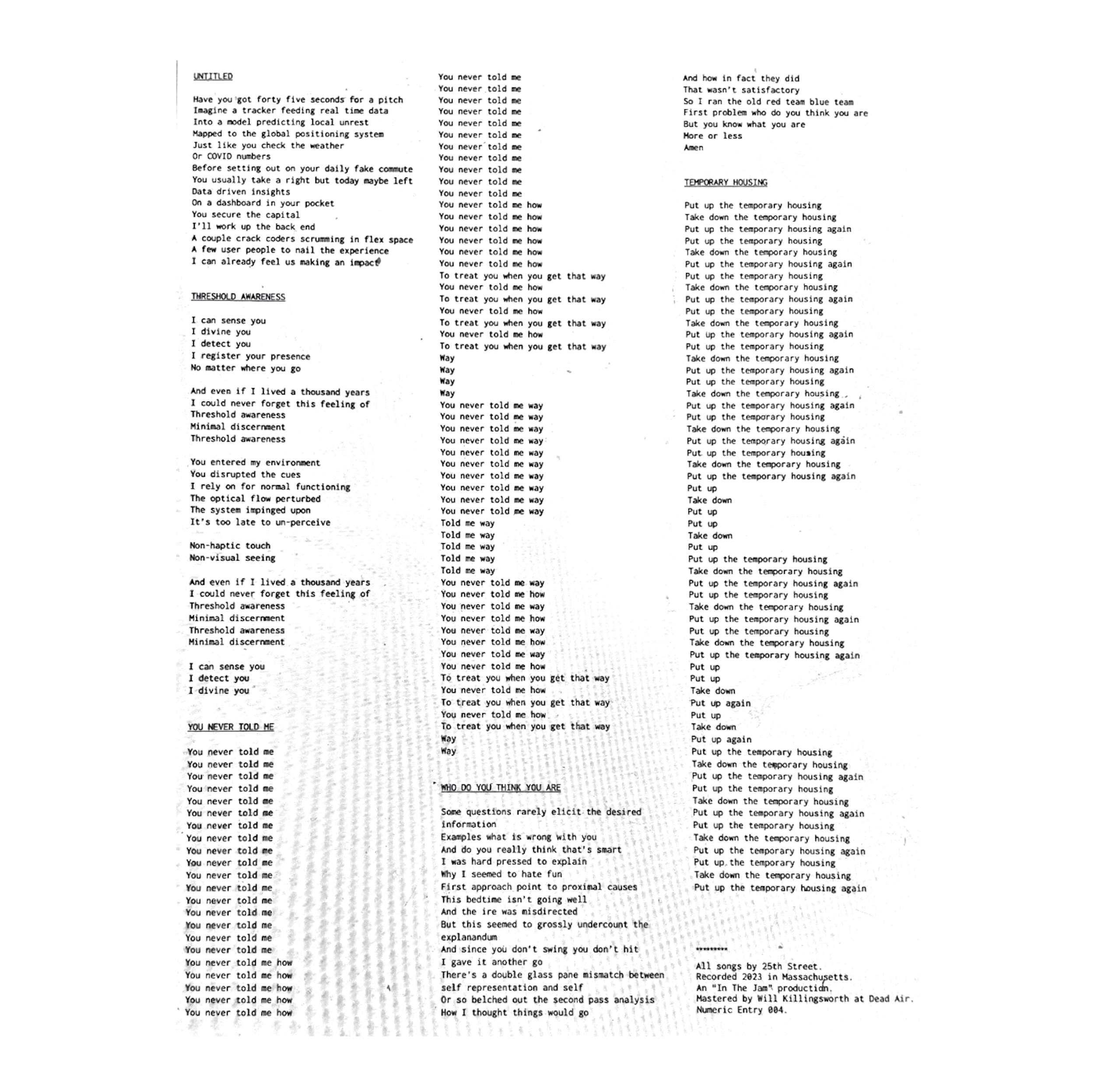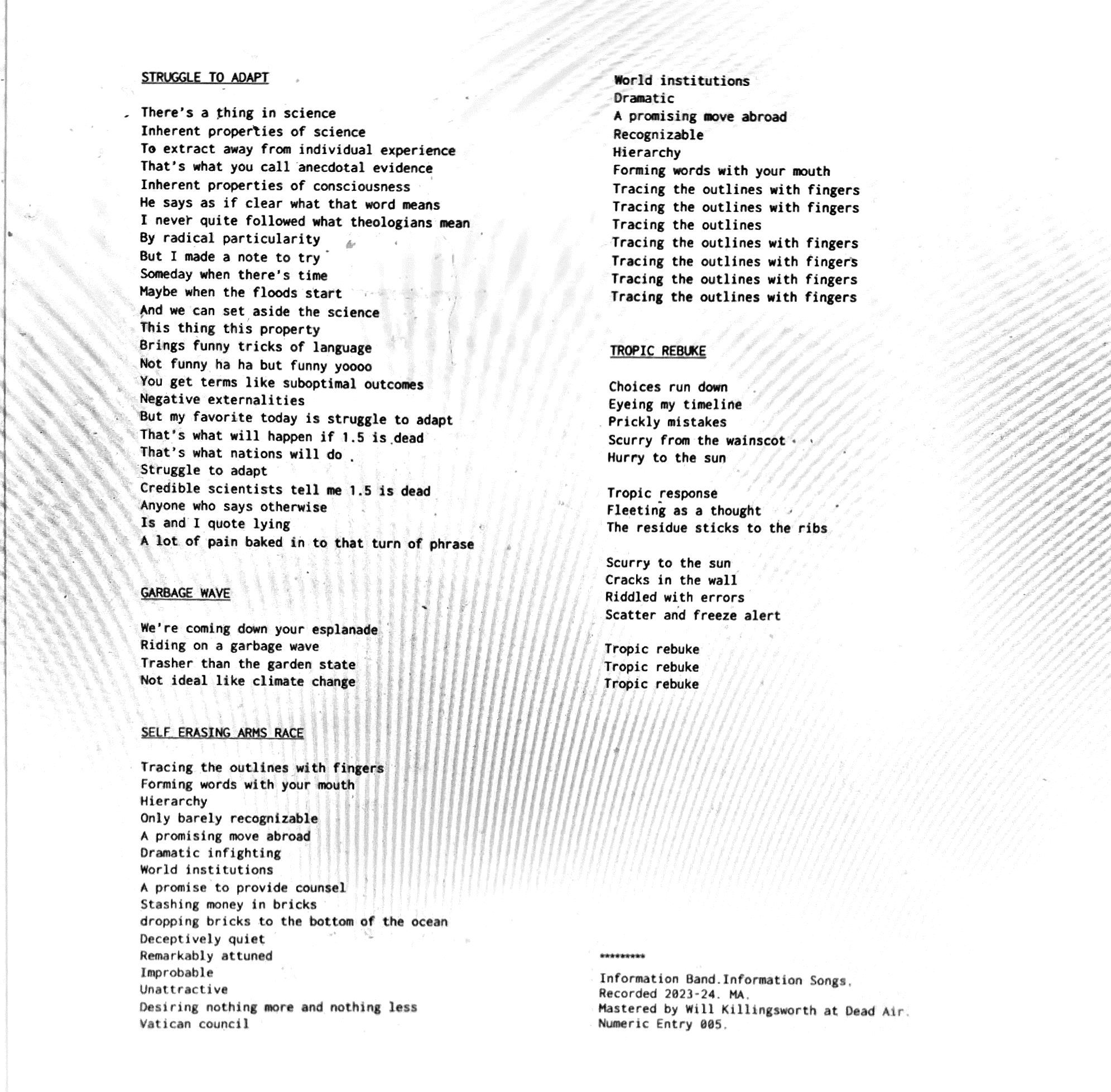information band new information NE012 AMZ APP BAN DZR pan SPO TDL YTB NUMERIC ENTRY DJs beat tape NE011 AMZ APP BAN DZR pan SPO TDL YTB LOSS CREW what have we done NE010 AMZ APP BAN DZR pan SPO TDL YTB LOCKED GATE 3/f canm NE009 AMZ APP BAN DZR pan SPO TDL YTB LOSS CREW the war on meaning NE008 AMZ APP BAN DZR pan SPO TDL YTB LOSS CREW A Stopped Clock Is Right Twice A Day NE007 AMZ APP BAN DZR pan SPO TDL YTB information band swampman problem b/w flags NE006 AMZ APP BAN DZR pan SPO TDL YTB information band information songs NE005 AMZ APP BAN DZR pan SPO TDL YTB NUMERIC ENTRY DJS ZERO MONTHLY LISTENERS NE0ML listen PLAYLISTS 25TH STREET CHOICES NE004 AMZ APP BAN DZR PAN SPO TDL YTB INFORMATION BAND THE RAFT NE003 AMZ APP BAN DZR pan SPO TDL YTB DETERMINANTS MEMORY AND LANGUAGE NE002 AMZ APP BAN DZR PAN SPO TDL YTB INFORMATION BAND HUMAN SUBJECTS NE001 AMZ APP BAN dzr pan SPO tdl YTB